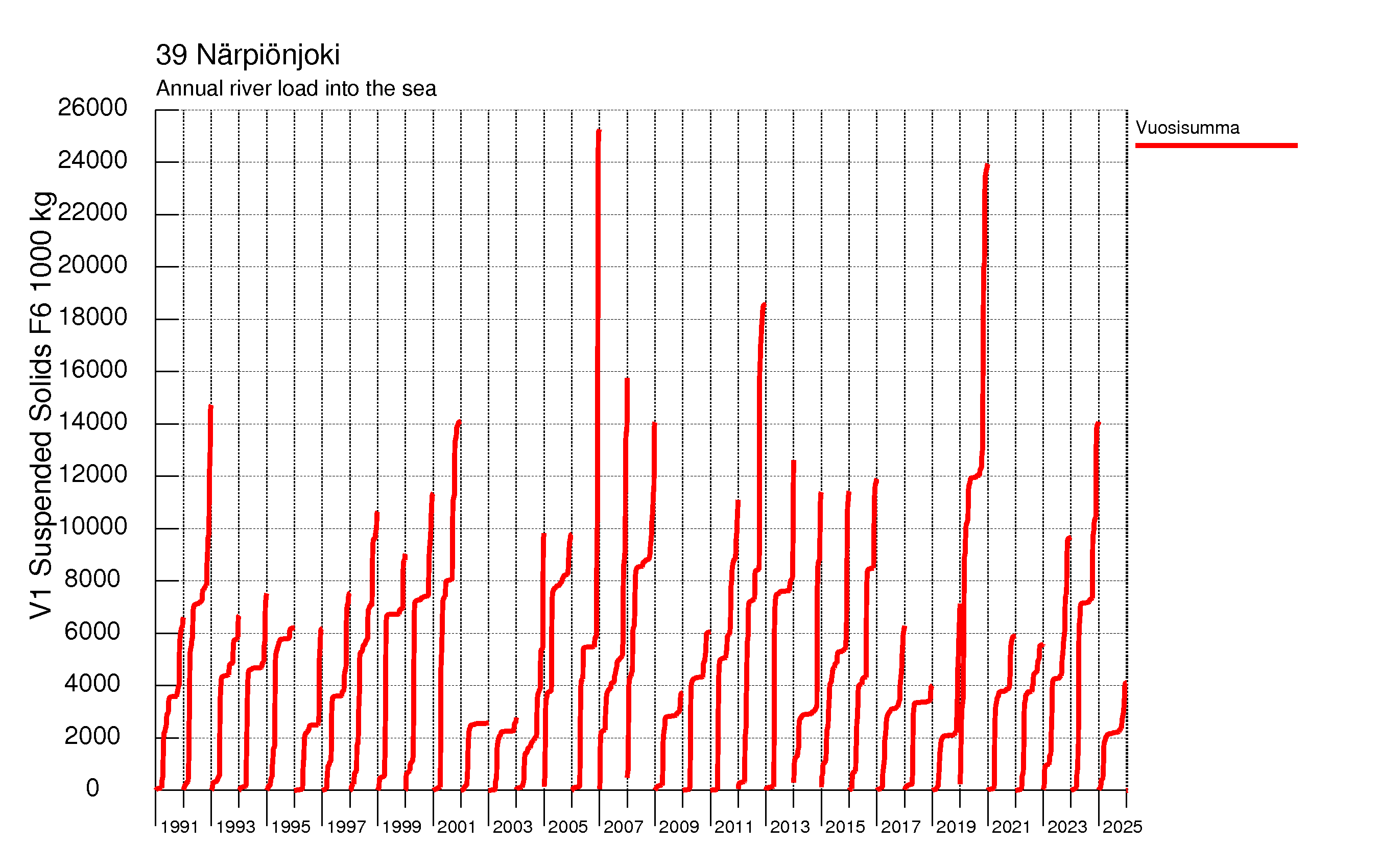 WSFS-Vemala: Kokonaiskiintoainekuormitus: Närpiönjoen vesistöalue - summa