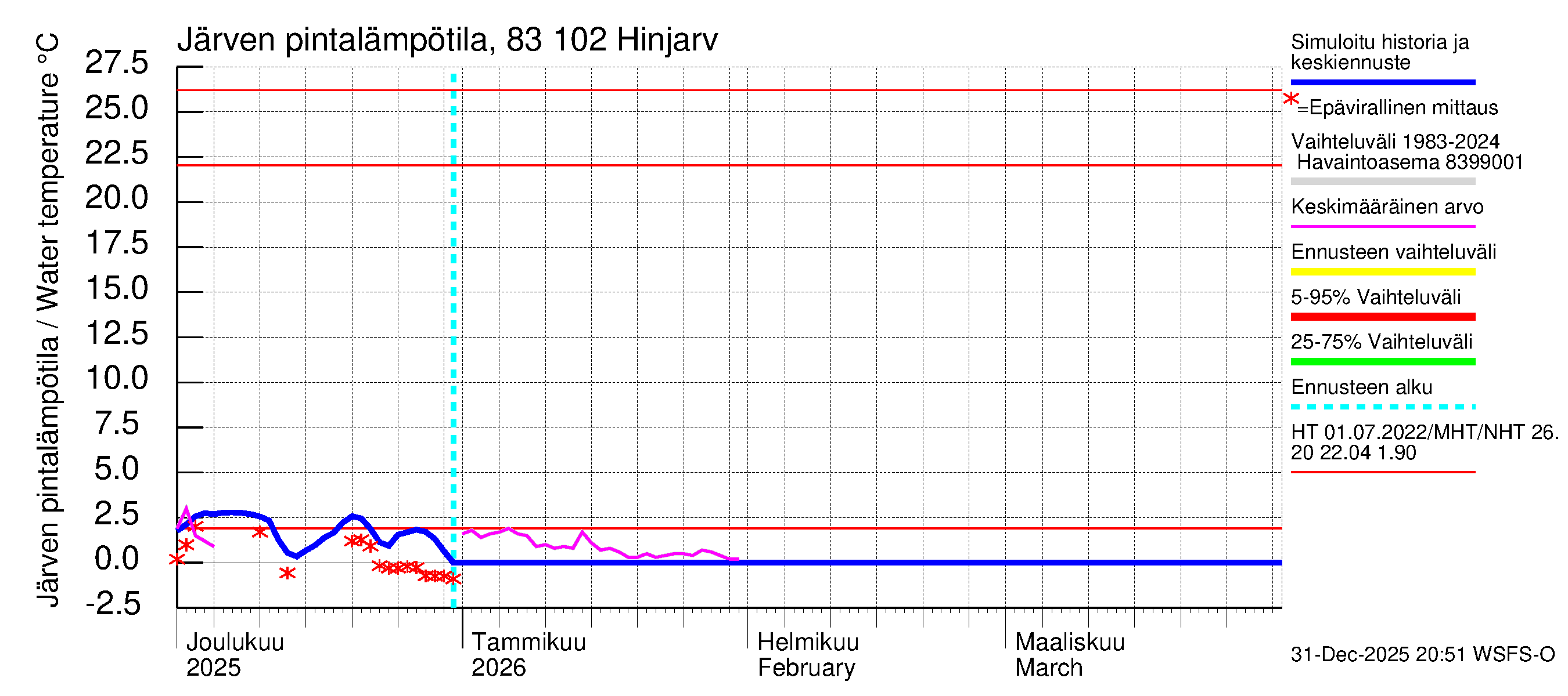 Vesistöennusteet: Järven pintalämpötilahavaintojen kooste
