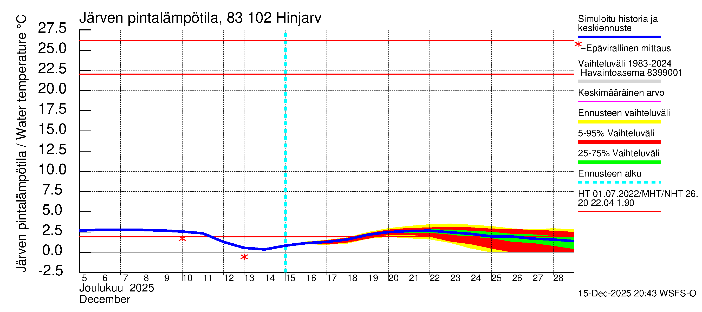 Vesistöennusteet: Järven pintalämpötilahavaintojen kooste