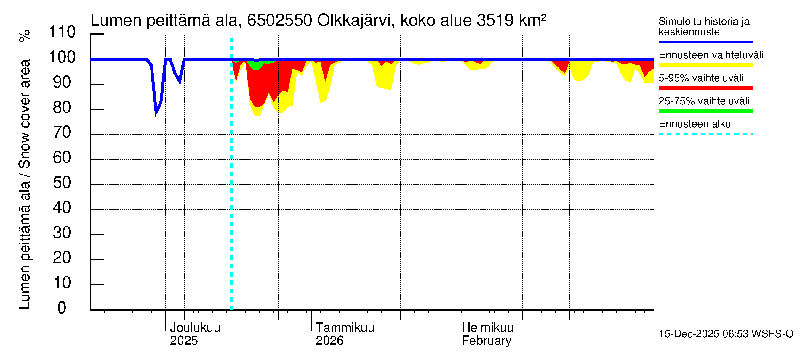 Kemijoen vesistöalue - Permantokoski: Lumen peittämä ala